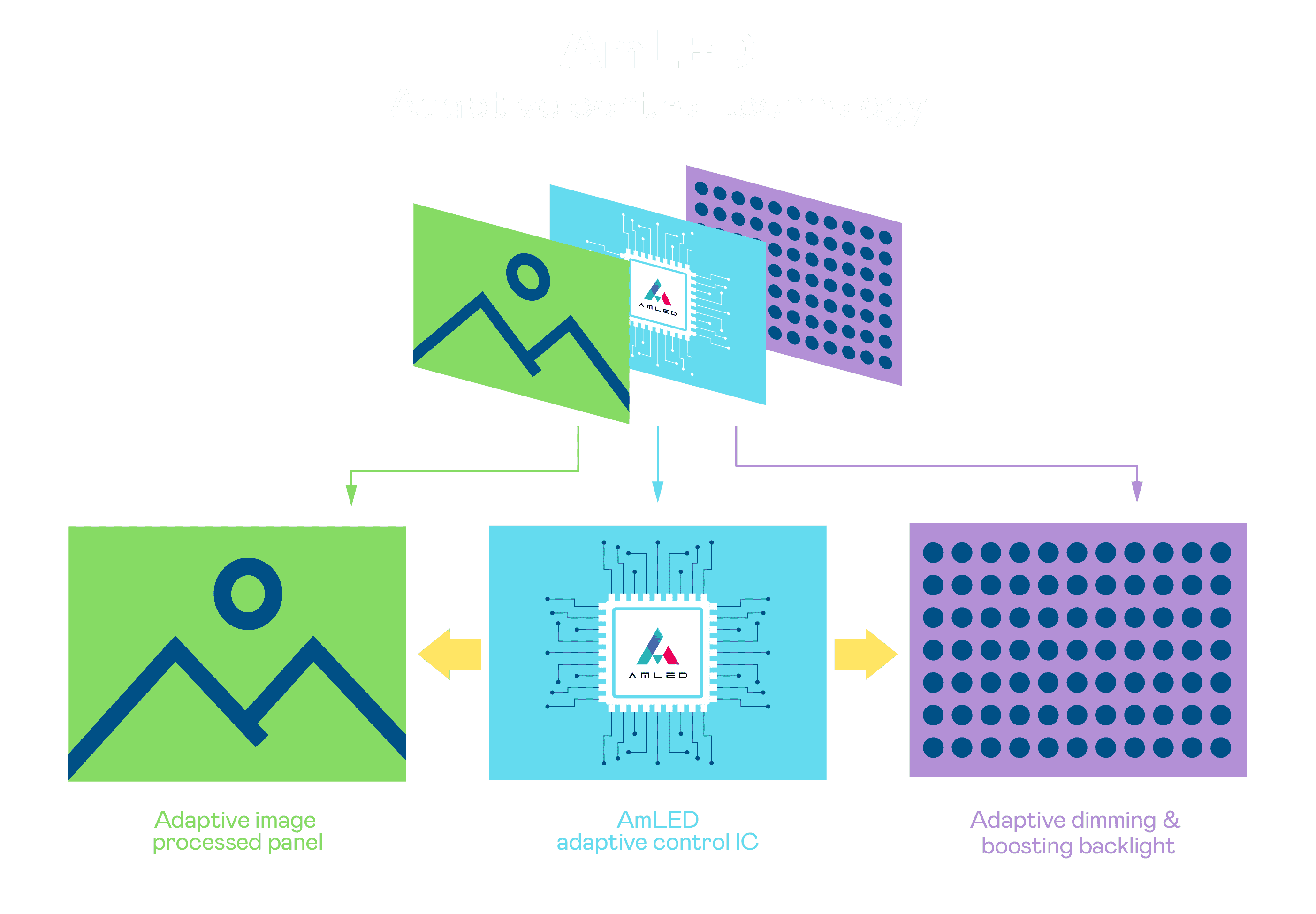 AmLED 具备更省电与低蓝光特性。。。与一般的 LED 背光显示技术相比,,由于 AmLED 常时处于局部调光状态,,,其功耗仅有前者的 50% 左右,,同时 AmLED 还具备低蓝光特性,,满足长时间使用的护眼需求。。