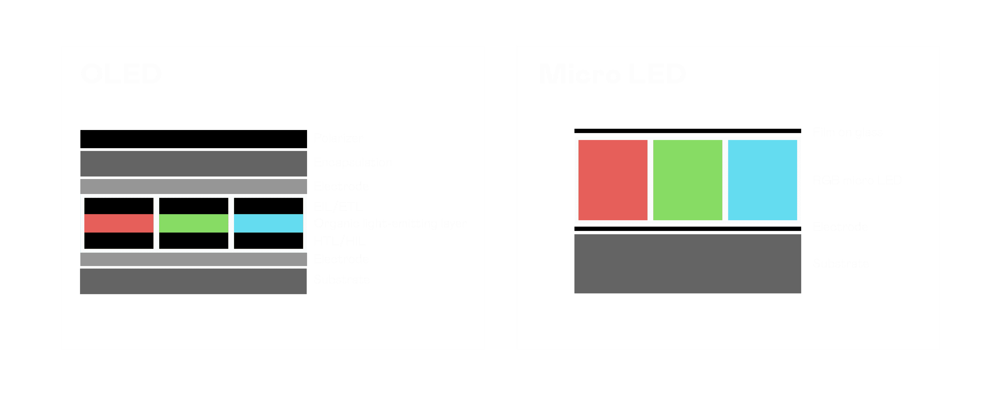 以 LED 做为显示画素,,,,可让 LED 的发光效率发挥到极致,,从而让显示器具备优异的亮度表现,,不论是在户外或室内,,,均具备出众的显示效果。。。。同时,,与使用有机材料的 OLED 相比,,,LED 具备更稳定、、寿命更长的特性,,,,不仅不会有画面烙印问题,,,而且更不容易出现故障、、坏点。。。