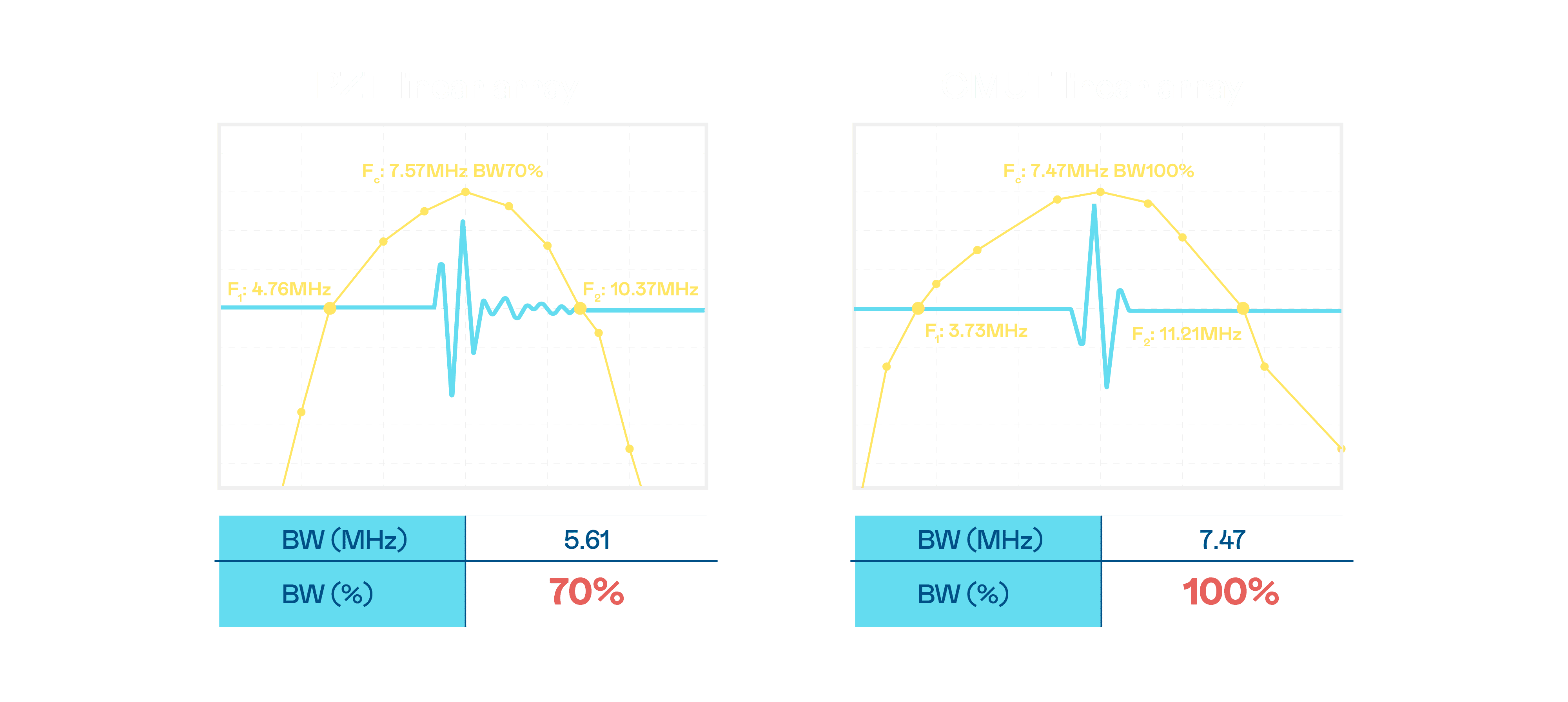 超音波影像的解析度高低,,首先取决于探头能发出的讯号频宽。。。尊时凯龙 CMUT 可提供高清晰的超音波讯号,,,,提供高频宽、、、、高灵敏度、、、影像纹理细节更高的超音波影像,,协助医护人员缩短影像判读时间及利用精准的医疗影像进行诊断。。